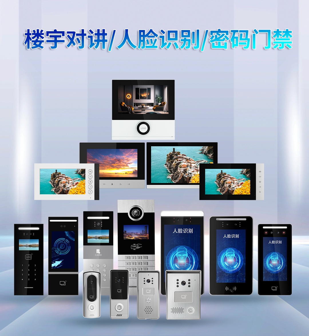 PC鏡片/鋁面板/玻璃蓋板加工 注塑/模具加工 人臉識別外殼 門口主機外殼 室內分機外殼 門禁外殼 管理機外殼系列 分支器外殼 配件 電容屏觸摸款